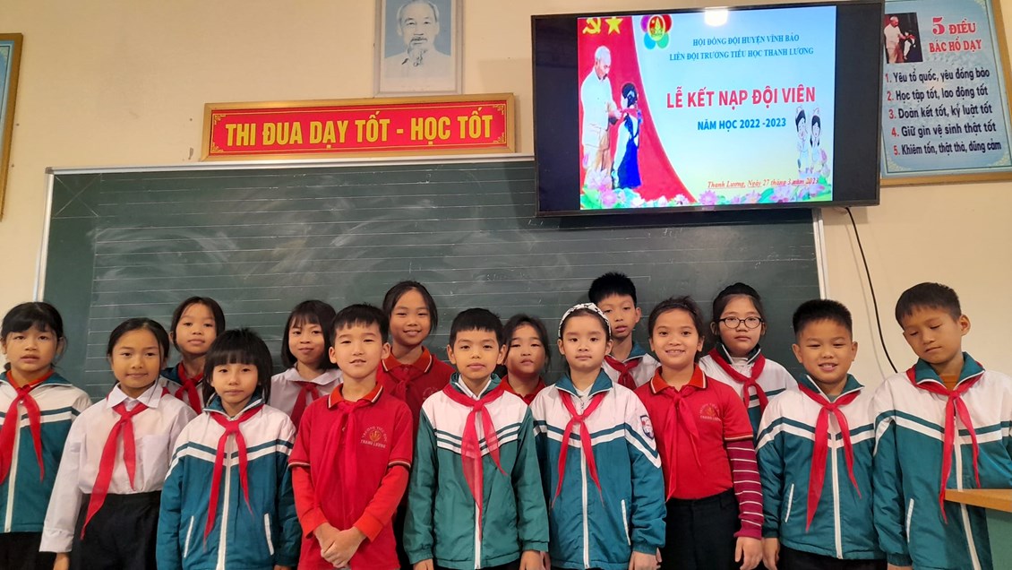 Sáng ngày 27/3/2023, Liên đội trường TH Thanh Lương đã tổ chức “Lễ kết nạp Đội viên” cho 45 em nhi đồng tiêu biểu khối lớp 3. Các em được kết nạp Đội viên hôm nay đều là những nhi đồng chăm ngoan, có thành tích học tập tốt và tích cực tham gia phong trào của nhà trường và Liên đội.
