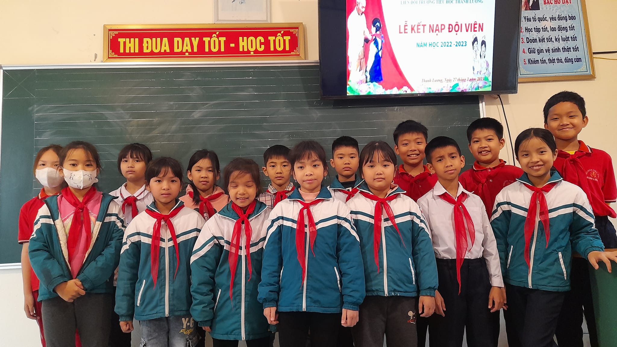 Buổi lễ diễn ra trong không khí vui tươi, phấn khởi, trên gương mặt của các em thể hiện rõ niềm hạnh phúc và vinh dự khi mình đã trở thành Đội viên Đội Thiếu niên Tiền phong Hồ Chí Minh. Được đứng trong hàng ngũ của Đội Thiếu niên Tiền phong Hồ Chí Minh là niềm vinh dự, là niềm tự hào đối với các em. Vì từ hôm nay, các em được mang trên vai chiếc khăn đỏ thắm màu cờ Tổ Quốc. Màu khăn tươi thắm như nhắc nhở các em phải phấn đấu vươn lên không ngừng để trở thành Đội viên tốt, xứng đáng là con ngoan trò giỏi - cháu ngoan Bác Hồ. Giây phút thiêng liêng này sẽ là kỉ niệm đẹp của tuổi học trò của các em.